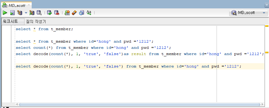 Oracle sql에서 테스트