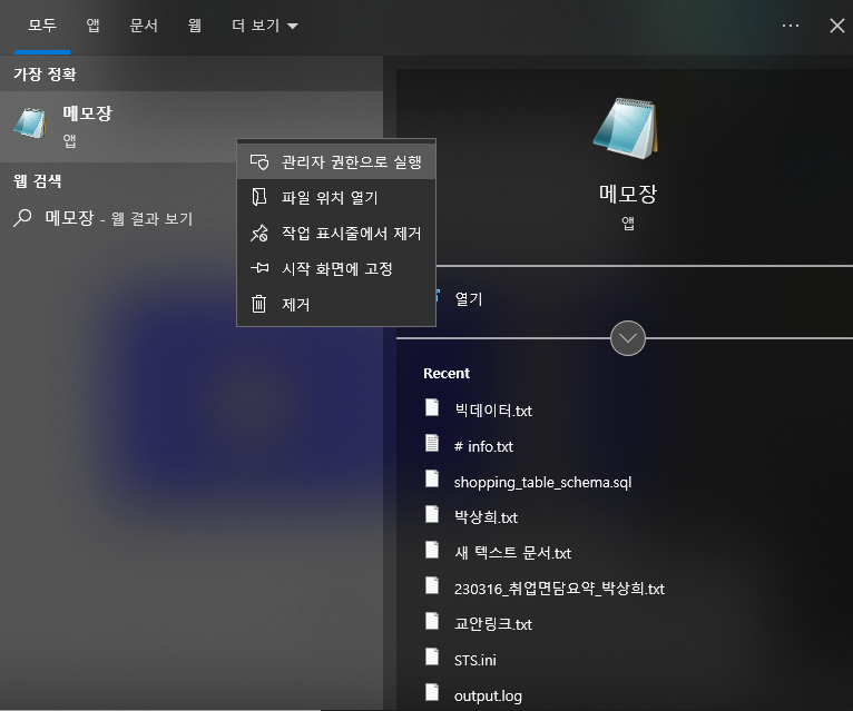 host 파일 메모장 관리자권한으로 실행 후 추가