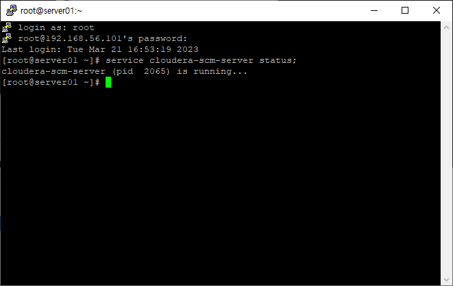 2. putty로 접속후 service cloudera-scm-server status;
