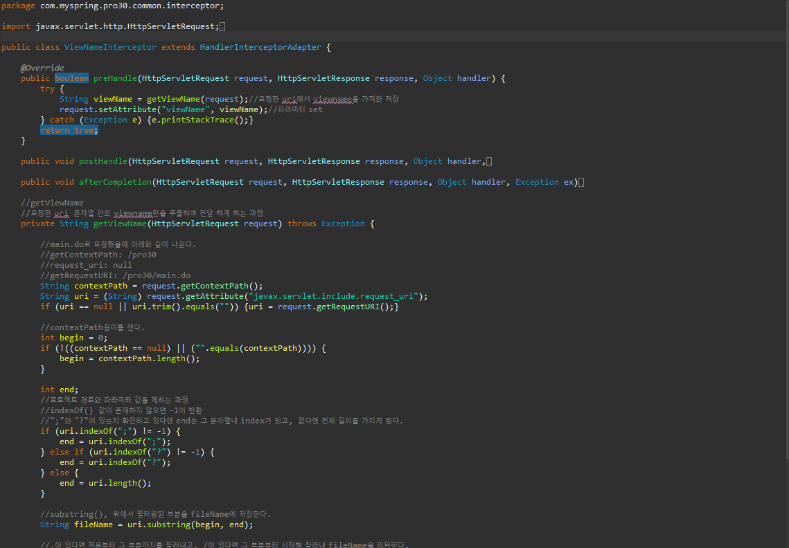 인터셉터에서 전달된 뷰네임을 가져와