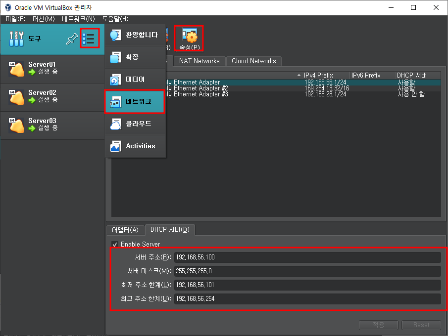 네트워크설정 및 실행